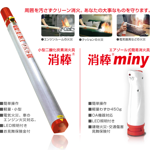 「消棒」及び「消棒miny」に代表される防災機器の販売を行っております。